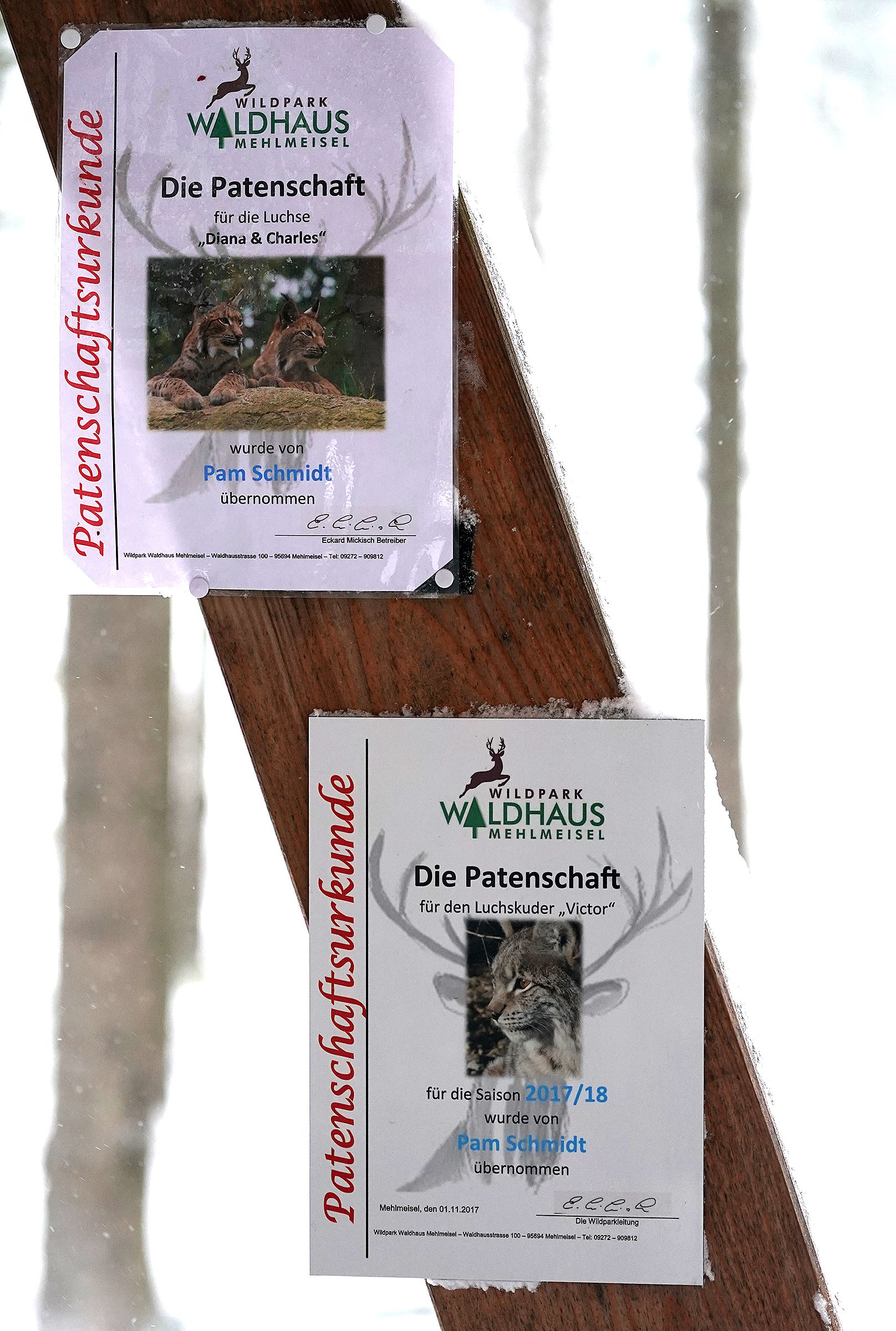 - Bayreuth, Charles, Diana, Erhard Laube, Fichtelgebirge, Luchs, Mehlmeisel, Schnee, Victor, Waldhaus, Wildpark